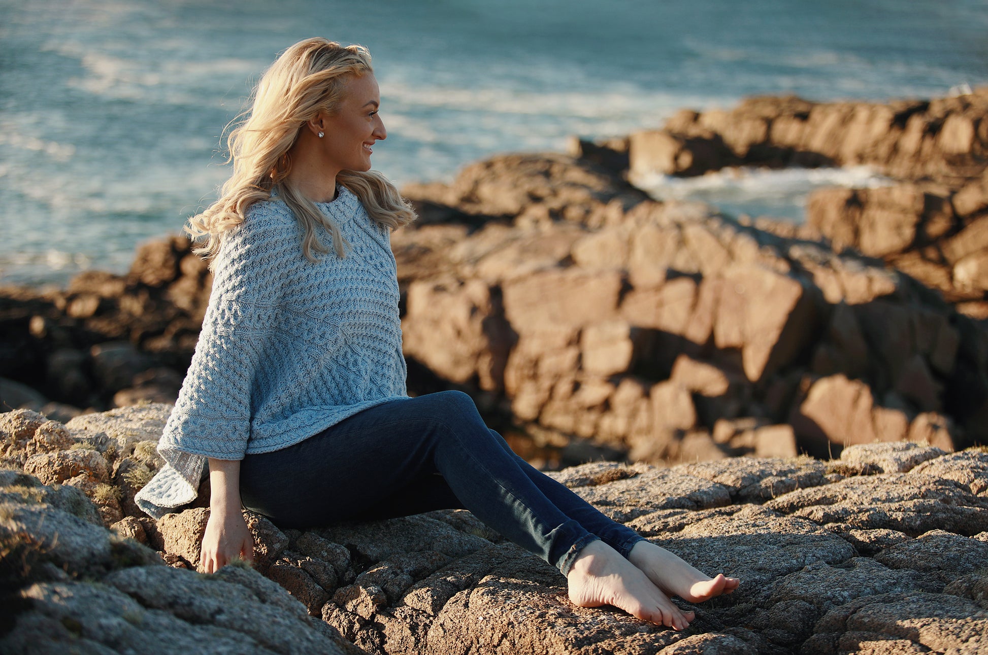 Aran Merino Wool Poncho – Sky Blue