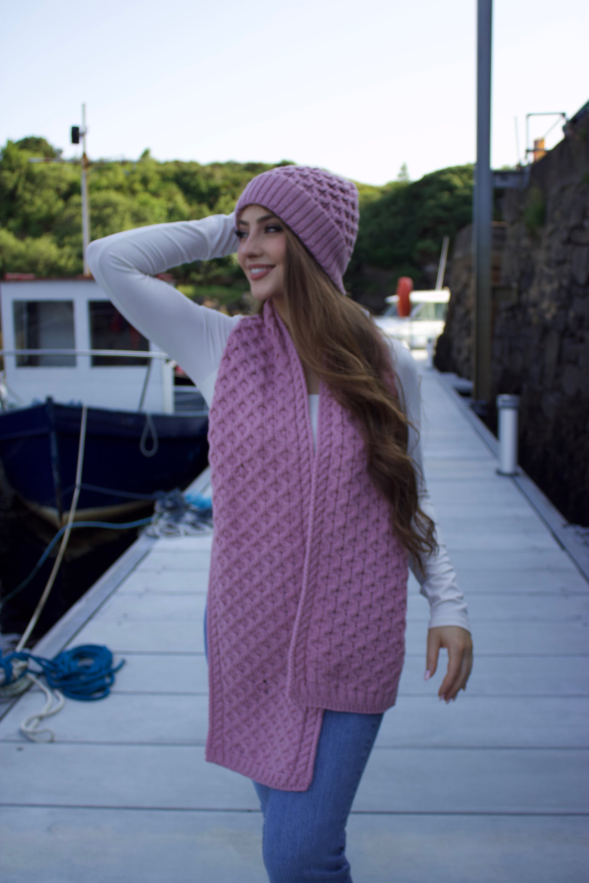 Wrap yourself in warmth and softness with our Blush Merino Wool Set , featuring an elegant cable-knit hat and an extra-long matching scarf. Crafted from 100% pure merino wool, this set brings the comfort and heritage of Irish knitwear into your everyday wardrobe.