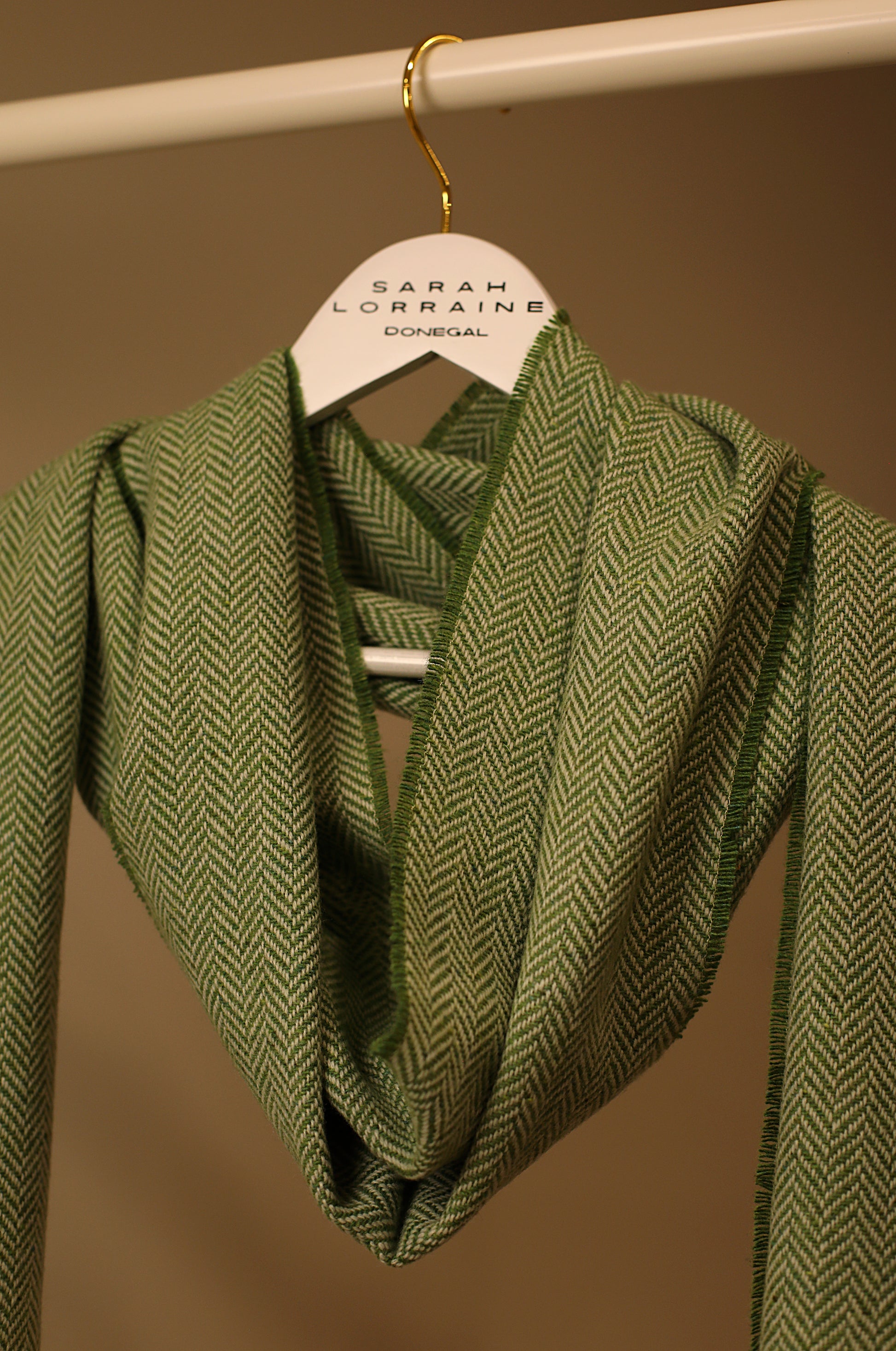 “Elevate your wardrobe with our exquisite herringbone scarf, meticulously handcrafted in the heart of Donegal. This luxurious accessory embodies the rich heritage and timeless elegance of Irish craftsmanship, offering unparalleled comfort and sophistication”