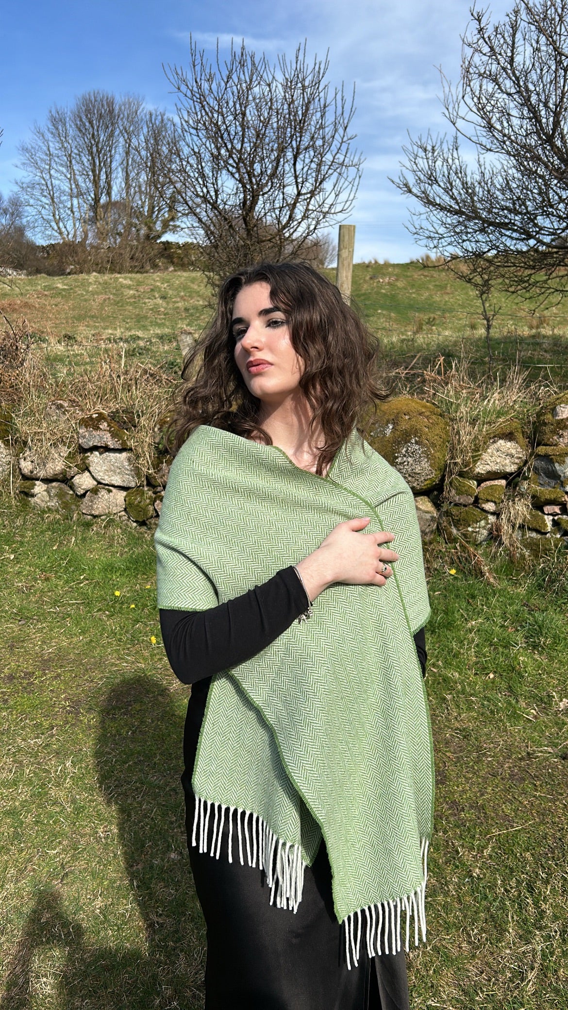 Luxurious Handcrafted Cashmere Blend Herringbone Scarf in Celtic Green