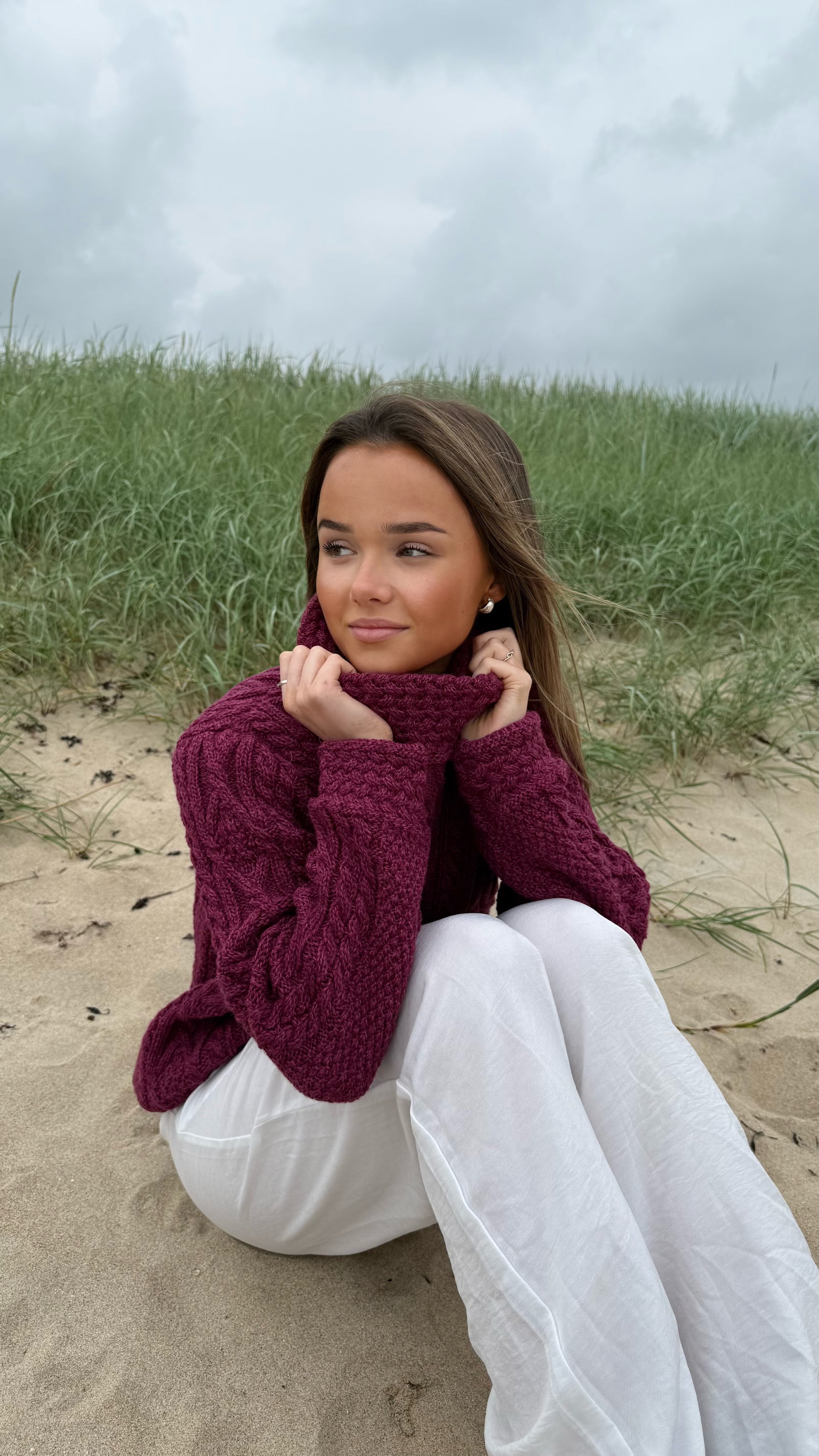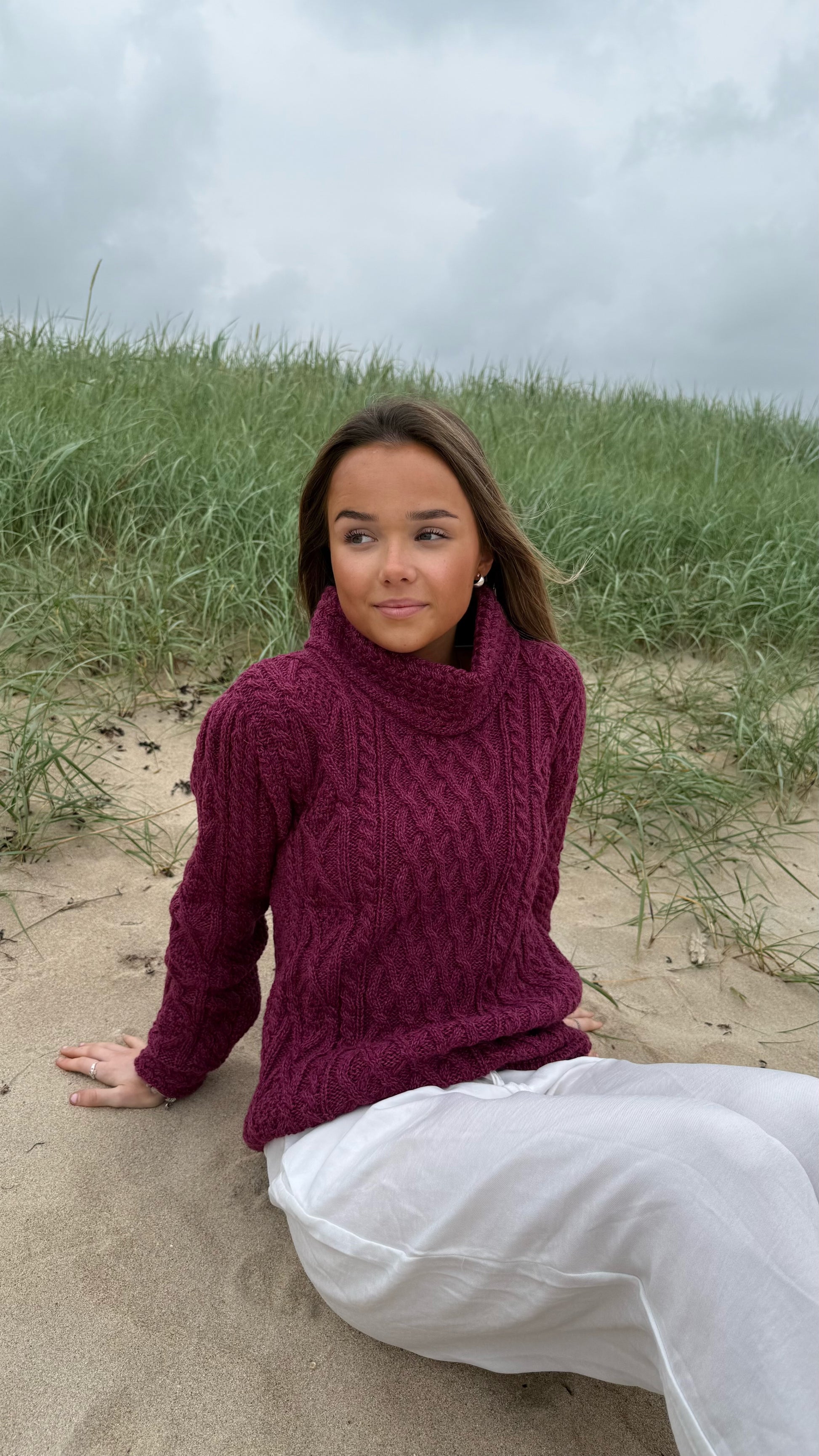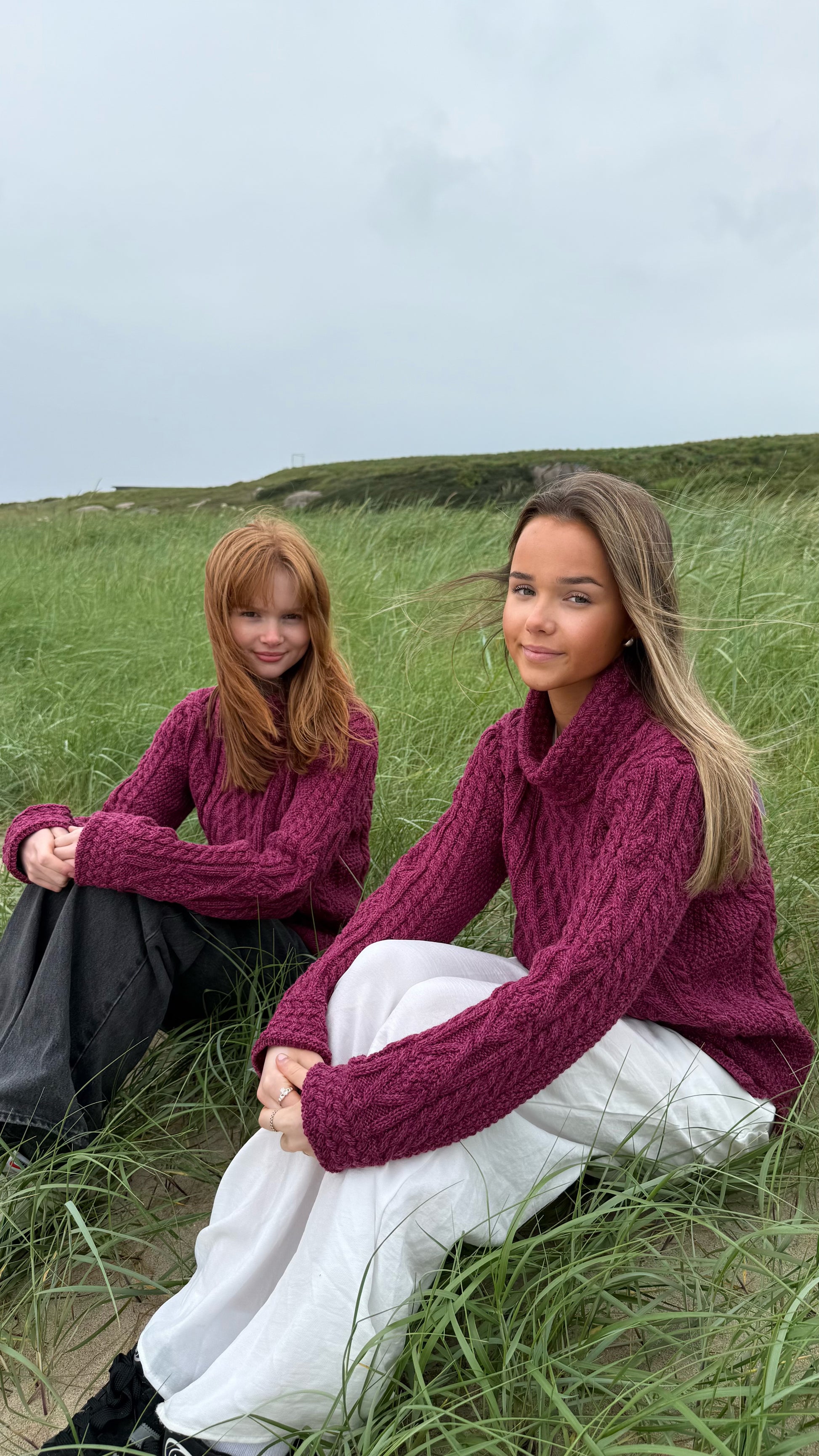 A modern classic with roots in Irish tradition, this Raspberry Marl Aran Sweater is crafted in a beautifully textured Aran knit. The rich raspberry marl shade brings depth and warmth, making it a standout piece for any wardrobe.