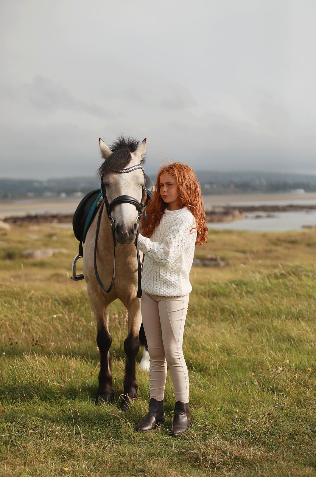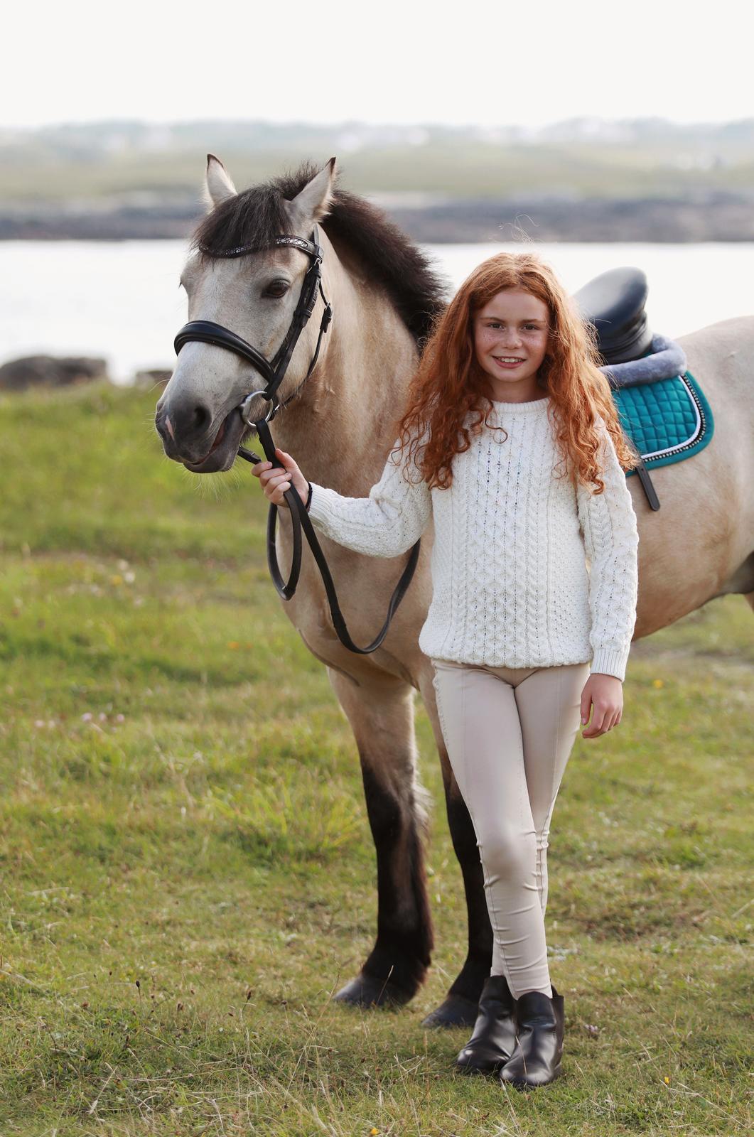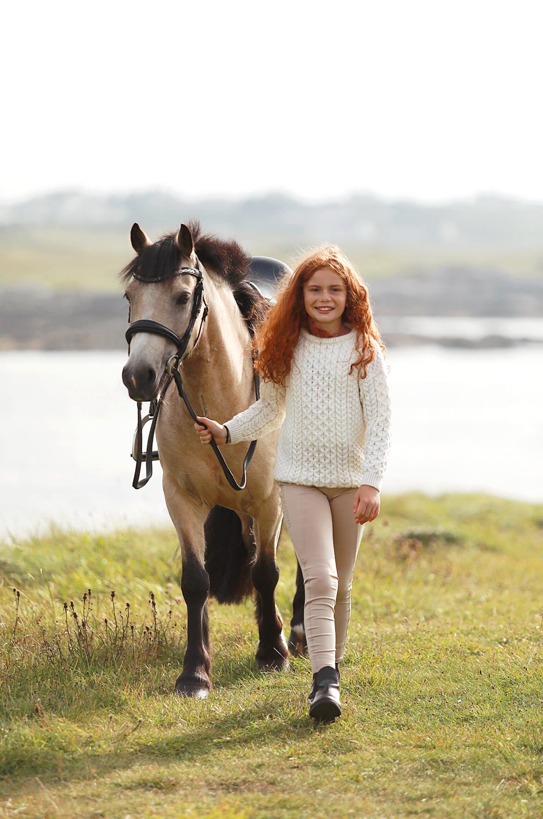 Knitted in 100% fine merino wool, it is luxuriously soft against the skin while being naturally breathable and durable. The natural colour evokes the beauty of Donegal’s wild meadows and sits beautifully with riding boots, jodhpurs, or your favourite jeans.