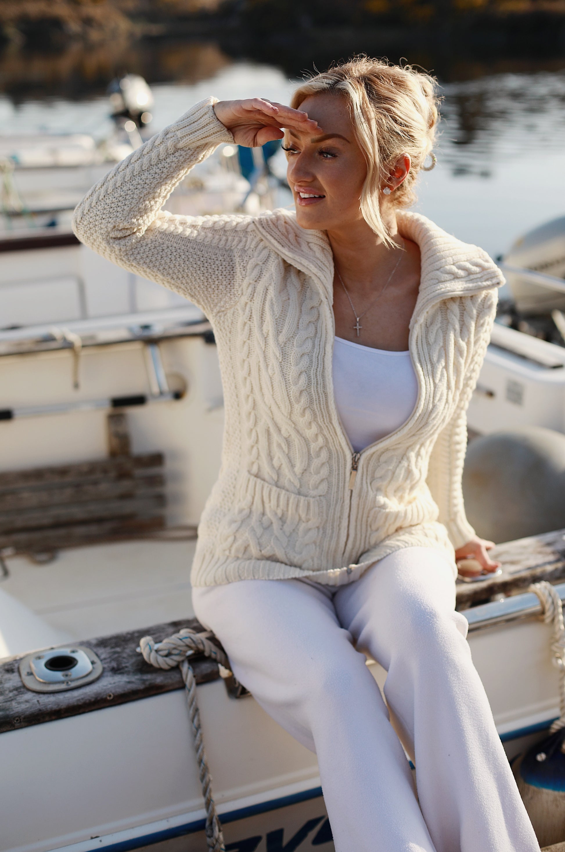 The Original Aran Shawl Collar Cardigan – 100% Merino Wool