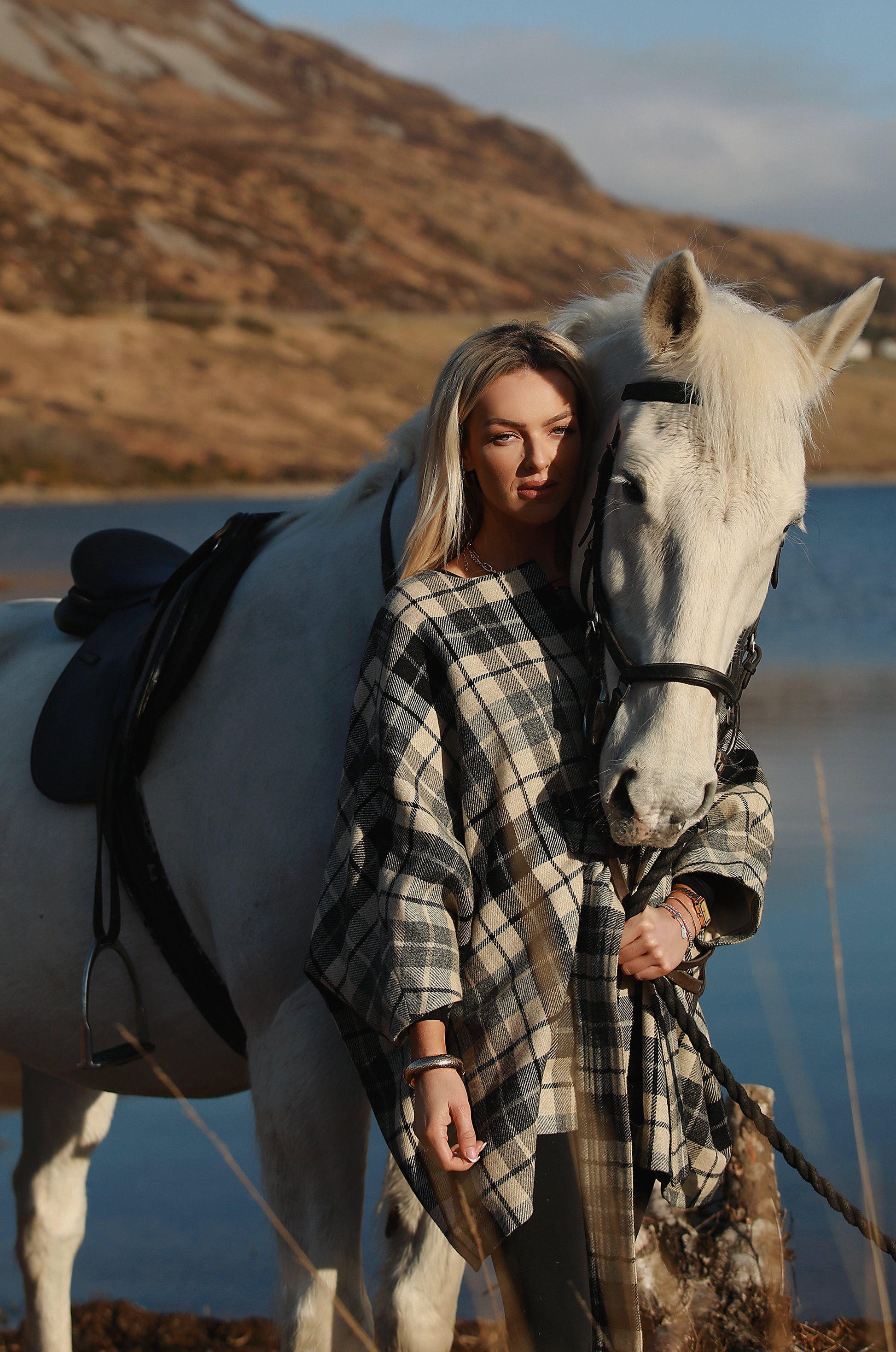 The Wild Atlantic Cape, a beautifully crafted piece made from 100% wool, woven in Donegal by Magee’s of Donegal. Known for their exceptional craftsmanship, Magee’s has been weaving luxurious wool fabrics for generations, ensuring a blend of tradition, quality, and timeless style.